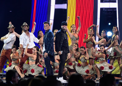 Will Smith subió al escenario vestido de blanco y rapeó en la versión remix de «Fiesta» con los colombianos de Bomba Estéreo, bañados por luces multicolor y rodeados por bailarines con poca ropa.