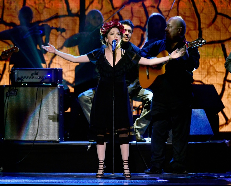 Natalia Lafourcade la cual se alzó con cuatro premios que incluyeron canción y grabación del año por «Hasta la raíz». Y también interpretó esta.