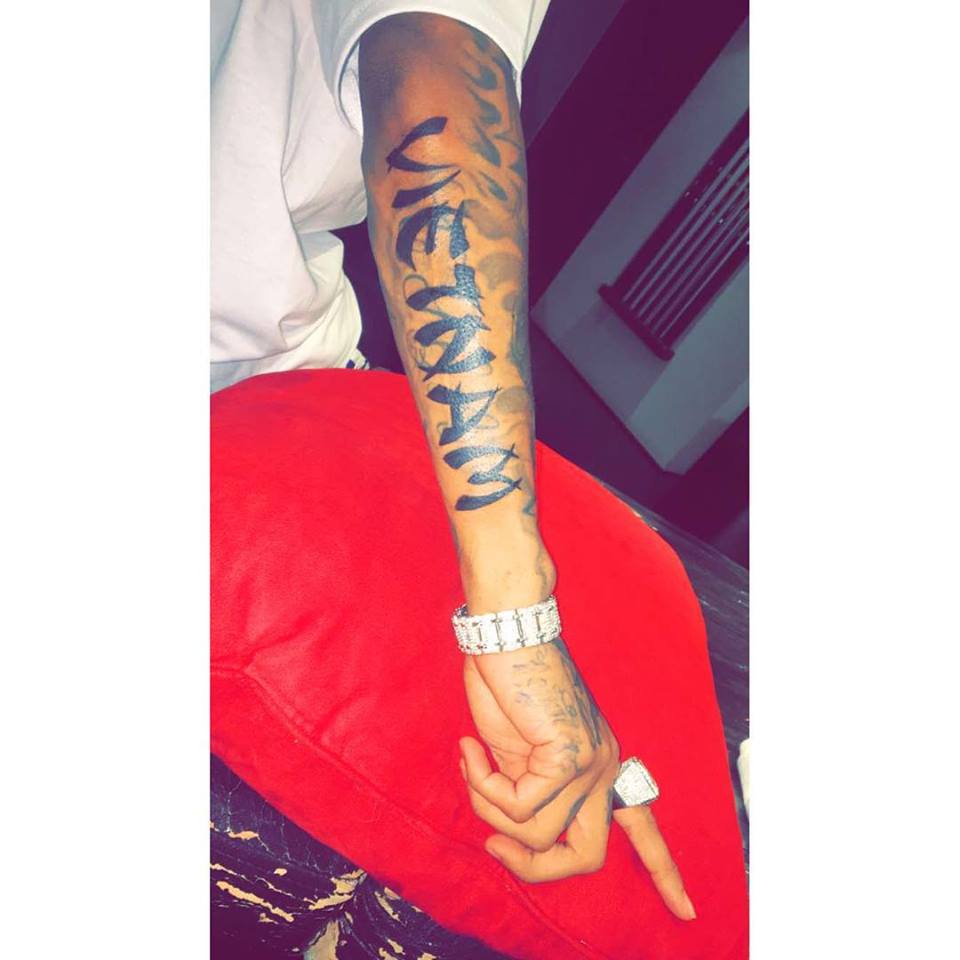 Este 3 de Junio de 2016, el rapero americano Tyga posteó en su cuenta de Snapchat fotos y videos con un nuevo tatuaje en el brazo derecho.