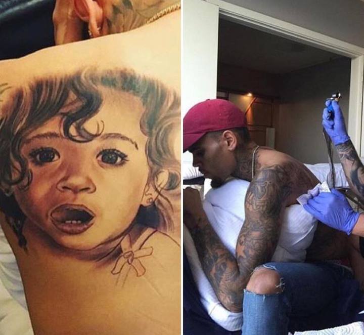 Recientemente se han filtrado fotos sobre el nuevo tatuaje del artista estadounidense Chris Brown, dicho a tatuaje hace homenaje a su hija Royalty Brown. Aquí las fotos: