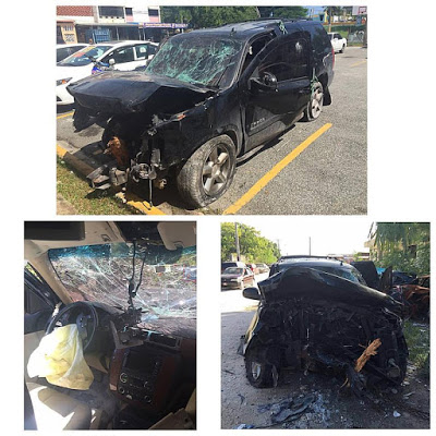Así quedó el vehículo donde el artista se encontraba cuando ocurrió el accidente: