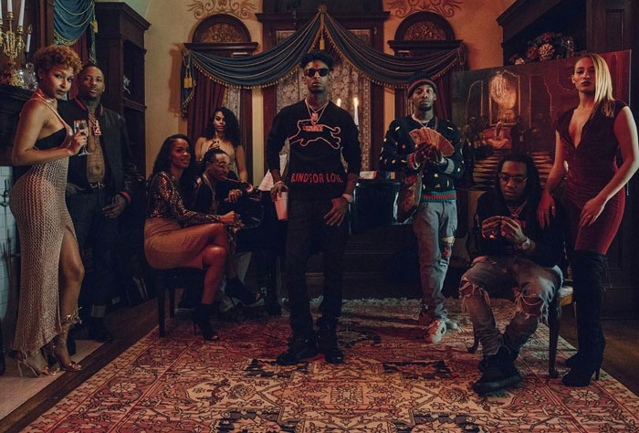Con 21 Savage, YG y Migos, el video de «Gucci On My» encuentra el grupo de estrellas en una elegante casa llena de oro, muebles antiguos, pilas de dinero, velas y, por supuesto, una abundancia de Gucci.